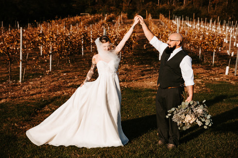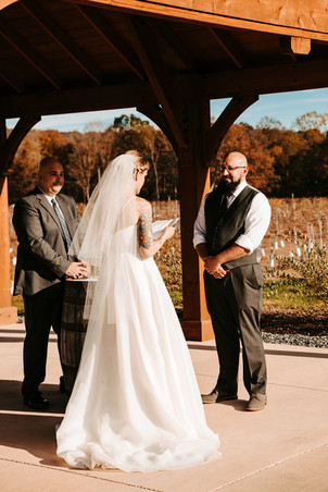 It was the most gorgeous sunny October day at the beautiful Brook Hollow Winery in Washington, NJ, and the leaves had already started turning. The grape leaves had already fallen from most of the grape vines, but that didn't take away from the vineyard's beauty. Immediately after the ceremony, Nathan found a ladybug in Bridget's veil. Good luck added to the perfect day!