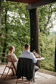 After the ceremony, they made a toast with bubbly over the ridge and shared their first sweet moments as a married couple with a delicious cake by Kitchen Chemistry. Their elopement was SEALed with a "Kiss from a Rose" performed by Penn Strings - we laughed, we cried, we twirled on the infinity deck to their sentimental song. Congrats to these sweethearts! ♡